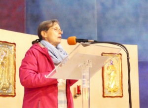 Il secondo intervento è stato quello di Marina Marcolini socia fondatrice e vice presidente dell’associazione di promozione sociale “Casa dei sentieri e dell’ecologia integrale”, che ha sede a Isola Vicentina, presso il convento di Santa Maria del Cengio, e fa parte della rete “Comunità Laudato si’”. Fondare un’associazione, basata sull’enciclica “Laudato si’”, per impegnarsi attivamente in attività culturali e spirituali di formazione, aiuta a uscire dal senso di paura, impotenza, paralisi che si provano davanti a problemi e minacce tanto grandi e a creare una comunità che si interroga, prova piste di ricerca e nuovi stili di vita, fa insieme esperienze per ritrovare speranza e forza per cambiare. Marina afferma che il rispetto del creato, di cui siamo parte, e di tutti i viventi è il fondamento per costruire società orientate alla salvaguardia e alla fioritura della vita anziché allo sfruttamento selvaggio della natura, delle donne e degli uomini. Questo potrà avvenire solo attraverso un grande sforzo collettivo di cammino verso la pace: pace con madre terra e pace tra gli esseri umani. Nel concreto, con le loro molte attività sperimentano e favoriscono la conoscenza di: spiritualità del creato, teologia e letteratura ecologica, buone pratiche economiche, agricoltura sostenibile, valorizzazione del territorio, ecc. Alla radice di tutte le grandi crisi attuali ci sono paradigmi culturali che vanno superati. In particolare, essere donna significa portare la differenza di genere nello specifico di tutte le diverse questioni che affrontiamo (di quale cultura abbiamo bisogno? Di quale economia? Di quale spiritualità? Come rileggere e riproporre la fede cristiana in un’ottica non patriarcale e rispettosa dei viventi anche non umani?). Nello statuto dell’associazione il pensiero delle donne è esplicitamente valorizzato: uno degli obiettivi è “favorire la conoscenza e la valorizzazione del pensiero delle donne quale importante strumento di cambiamento”.