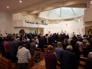 «L’appartenenza che Gesù mette in luce non è quella del gruppo, ma l’appartenenza più profonda è quella dell’agire nel suo nome, cioè nel suo Spirito, con la sua forza. Il vero discepolo lo fa l’agire nel nome del Signore», ha continuato il parroco. «Poco prima i discepoli non erano stati capaci di guarire l’epilettico, mentre ora qualcuno che non è del gruppo dei discepoli riesce a fare miracoli, perché agisce nel nome di Gesù», ha spiegato don Matteo. Dell’inno ai filippesi, testo biblico di riferimento per le suore orsoline scm, scelto come seconda lettura è stata sottolineata l’importanza anche di far memoria di tanti compagni di viaggio che ciascuno incontra durante la propria vita e che pareva particolarmente rilevante per l’anniversario di professione religiosa: «Il movimento di Gesù, che si è fatto uomo abbassandosi e che è descritto da san Paolo, è il movimento che ogni discepolo del Signore sa che deve vivere, cioè spogliarsi progressivamente del proprio io per servire il Signore. C’è anche un movimento contrario di cui vorrei far memoria oggi perché non c’è soltanto chi si spoglia di sé per servire, ma c’è anche un popolo di Dio che riconosce questo e che aiuta chi fa questa scelta a portarla avanti, anche solo con un bicchiere d’acqua. Noi riusciamo ad essere fedeli perché ci sono tante persone che ci offrono quotidianamente questo bicchiere d’acqua, una parola… Oggi dobbiamo fare memoria di tutti questi aiuti e sostegni ricevuti da tutte le persone che si rendono vicine a noi», ha concluso il sacerdote.