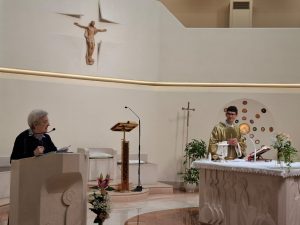 Le quattro giubilari hanno portato all’offertorio, oltre al pane ed al vino, anche un mazzo di fiori che è stato portato nella cappella della fondatrice e un cesto di frutta come desiderio di continuare a portare frutto nelle proprie vite.
