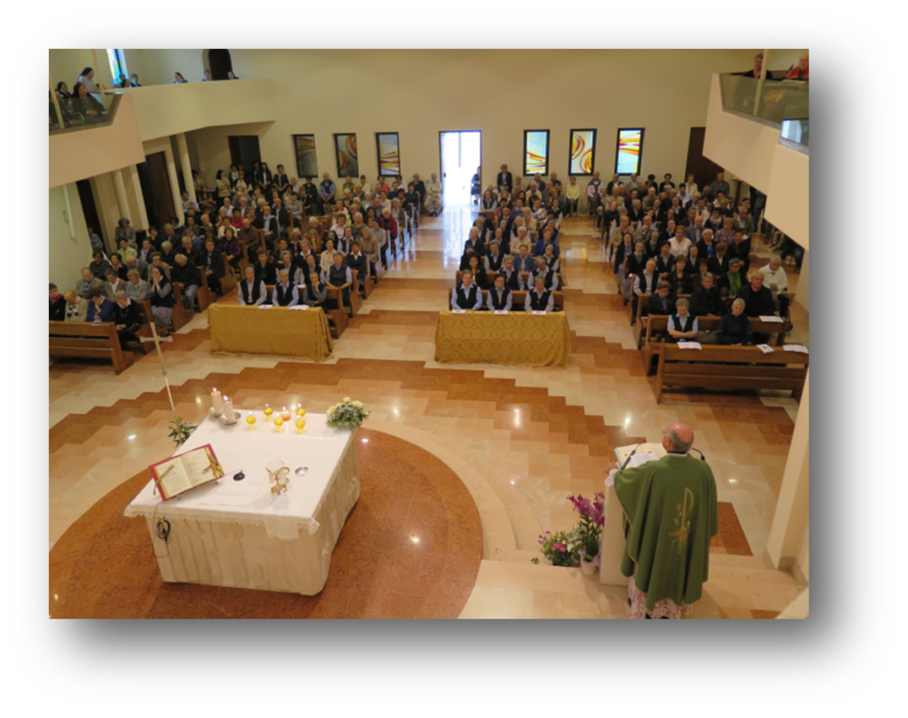 Ci sono stati anche dei segni nuovi, in particolare quello della benedizione delle mani delle sei consorelle giubilari: mani oranti, mani operose, mani capaci di prendersi cura della vita nei suoi vari aspetti e nei vari luoghi in cui sono presenti: oltre che nel Veneto, in Campania, in Calabria, in Toscana, nel Lazio e in Lombardia … mani che benedicono dopo aver accolto e che si fanno strumento di misericordia…